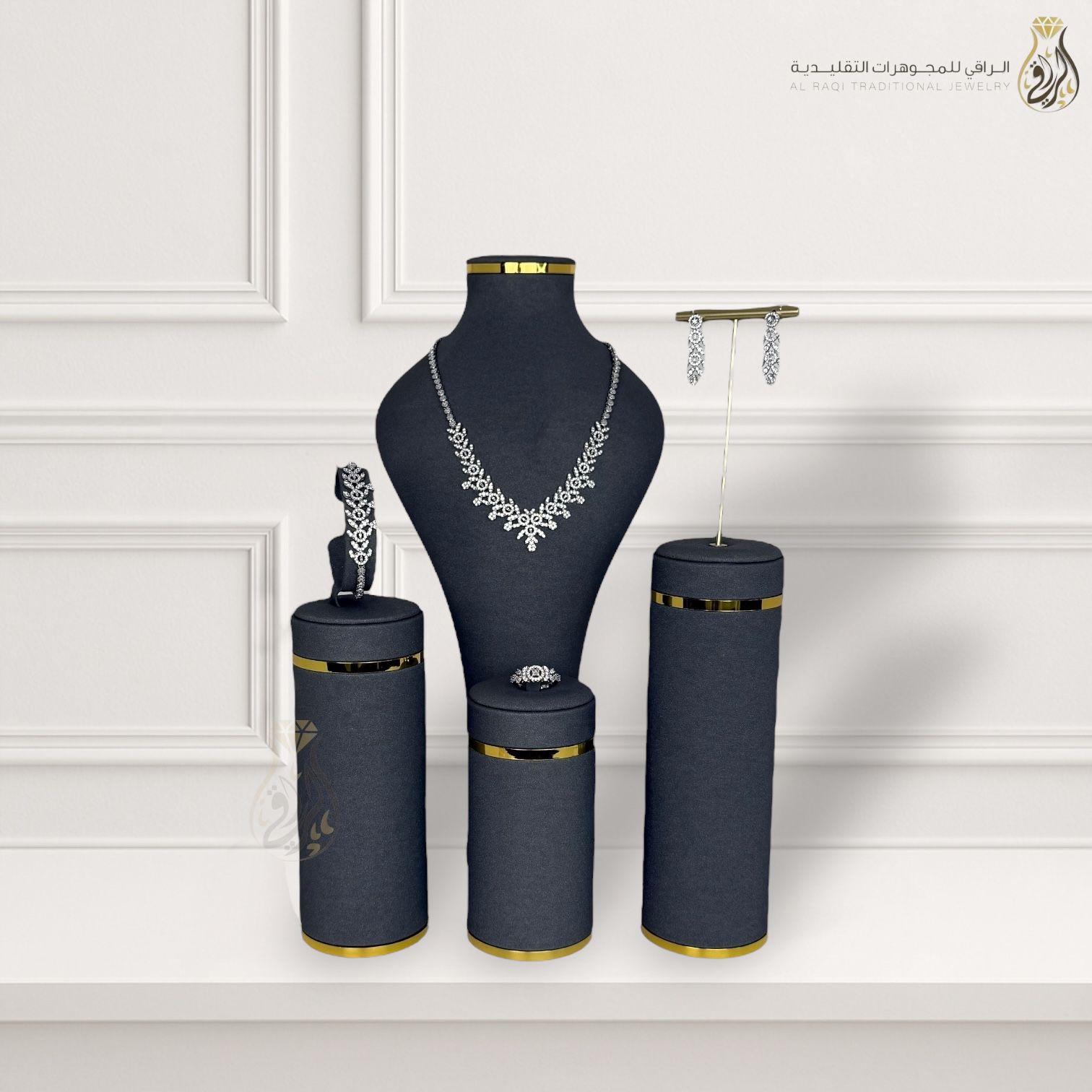 • طقم كامل من أربع قطع (عقد – سوار – خاتم – حلق)