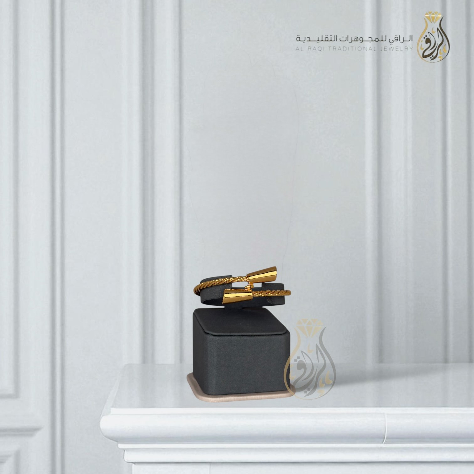 أسوارة أنيقة بتصميم حُبلي عصري يجمع بين القوة والفخامة. تأتي بلون ذهبي لامع مع لمسات نهائية مصقولة تضفي طابعاً فاخراً وملفتاً للنظر. تصميمها الانسيابي يجعلها قطعة مثالية للإطلالات اليومية والمناسبات الخاصة، ويمكن ارتداؤها منفردة أو مع اكسسوارات أخرى لمظهر أكثر تميزاً.