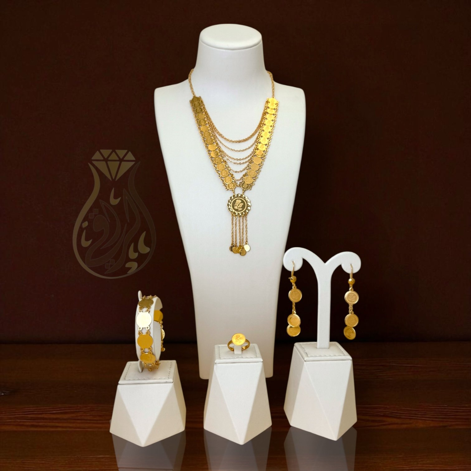- طقم متكامل: عقد + أساور + حلق + خاتم.