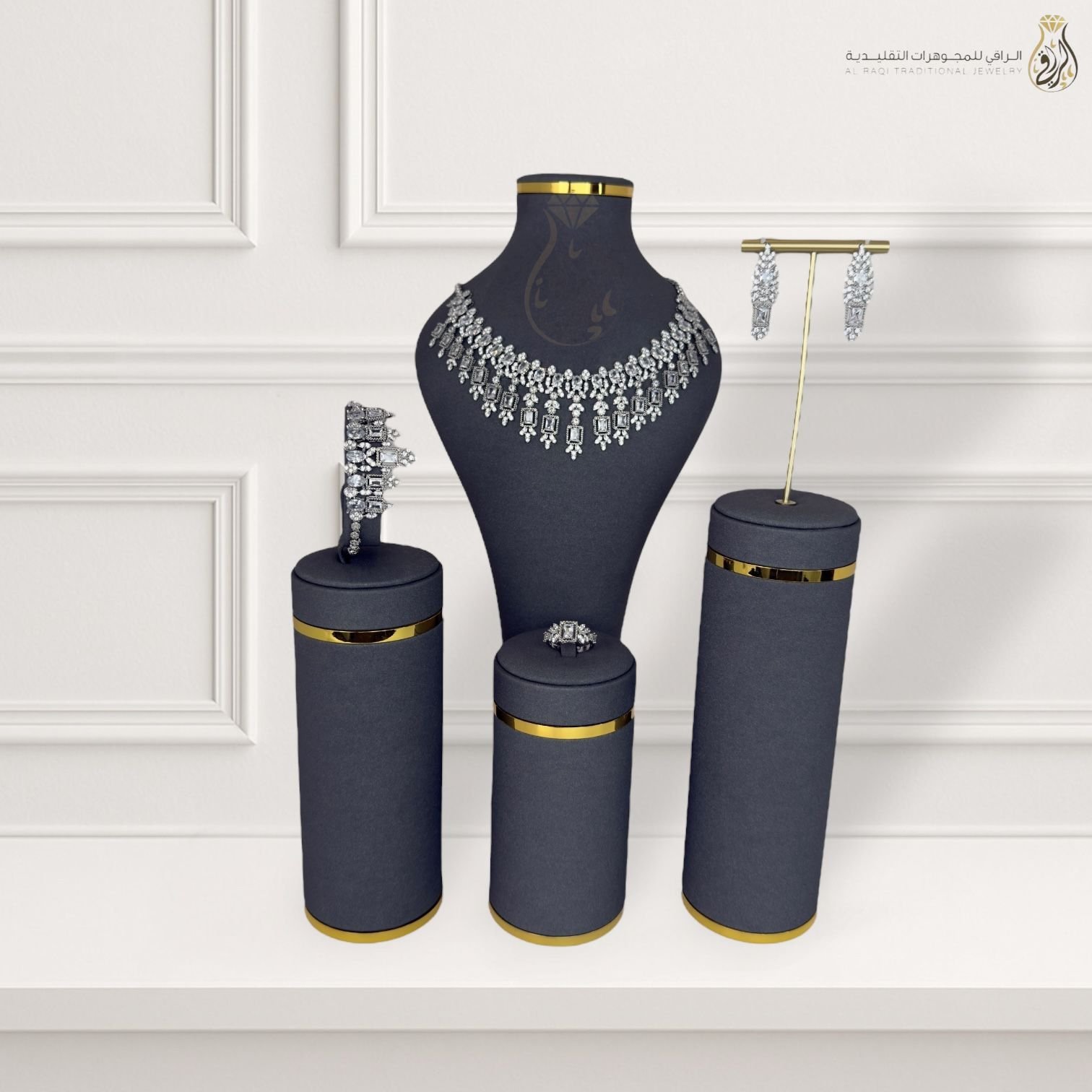 • طقم متكامل (عقد + أقراط + سوار + خاتم)