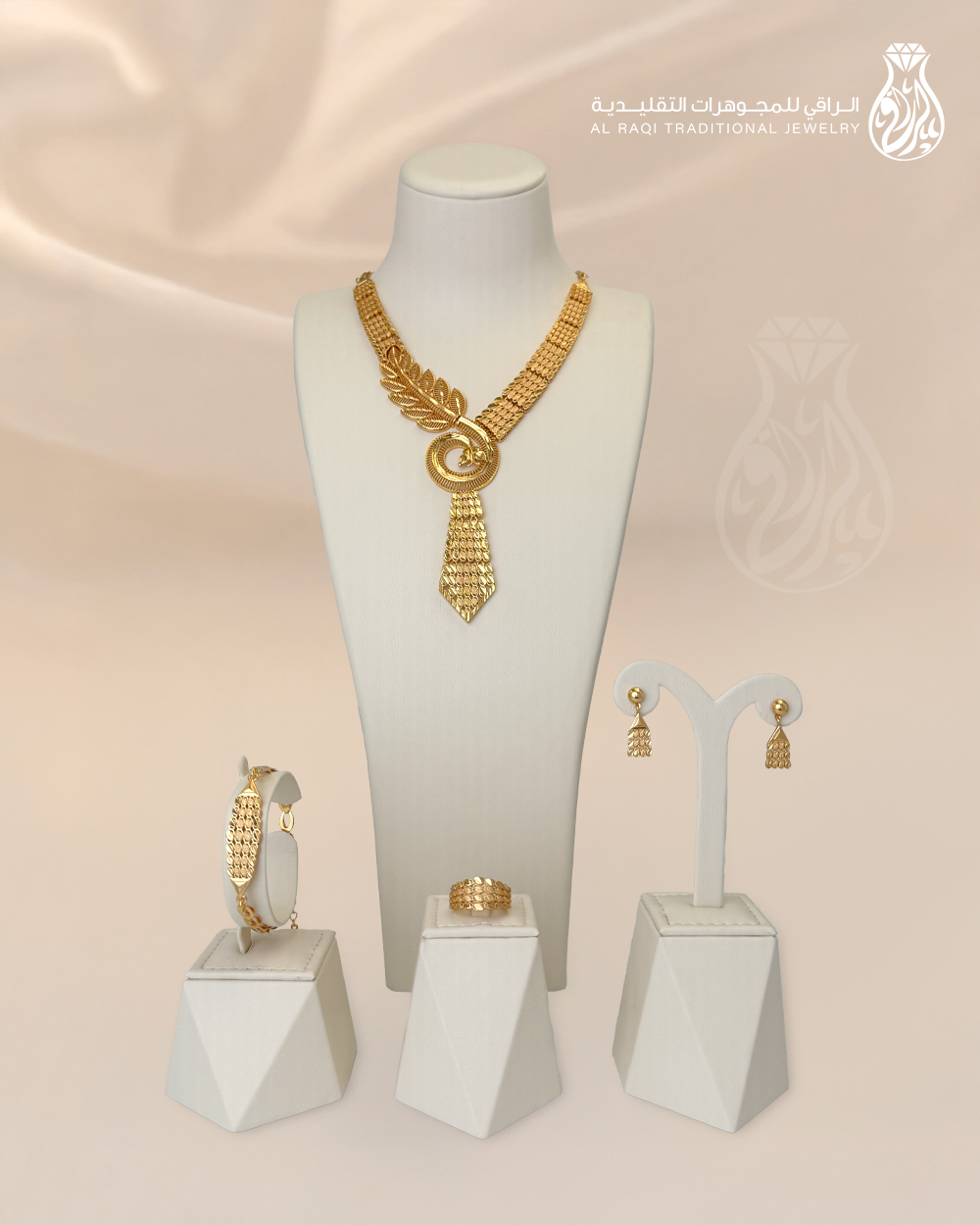 • يتكون الطقم من: عقد + حلق + خاتم + اسوارة.
